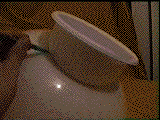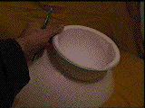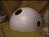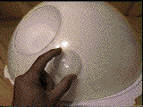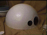 Here we have taped the bowl to the hole in the dome. See what we were attempting to do? Fill in the hole.