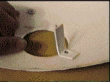 I need to tightly secure the small domes to the inside of the larger domes so I decided to make some brackets that would hold the domes in place. I cut a strip of plastic .5 inch (12mm) wide and 1.5 inches (35mm) long. I then heated up the plastic and bent it into shape.