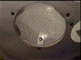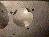 Here's a large dome in place. Notice how I cut the hole for this concave smaller than the Clear dome itself. This allowed the clear dome to COME OUT of the larger dome and look a little more mechanical.