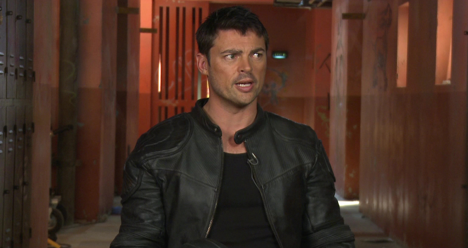 The jacket also has a zipper sewn to the inside of the lower back area , which connects the jacket to the pants. This is a standard design seen in motorcycle gear and helps protects the wearer during accidents and , for the movie, helps keep the costume looking 'together' at all times. Rob Allsopp revealed this bit at his 2013 DragonCon panel.