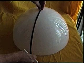 If you use the same globe method we did to make the domes you will need to cut the globe into two equal size domes. that means cutting the globe in half. To so this you will need to find a center point on the globe from which to base your cutting calculations from.