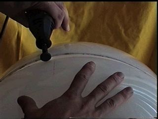 Notice that the lampost hole in teh existing globe is off center at the bottom. We will use this hole to our advantage later on when doing detail work on the Interrogator Droid.