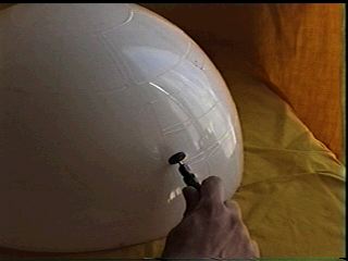 Here we use a piece of cloth or rope to hold a constant line in place while we draw the horizontal lines onto the Droids dome.