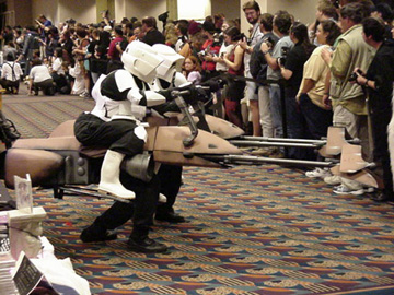 Excellent shot of the speeders at Friday's Star Wars costume contest. -photo by Drasham. |