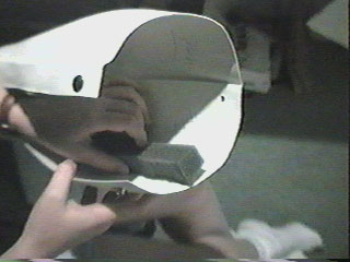 First size up the piece of armor to the leg and figure out where you need to put the foam. Once you figure that out, place the foam inside the plastic. |