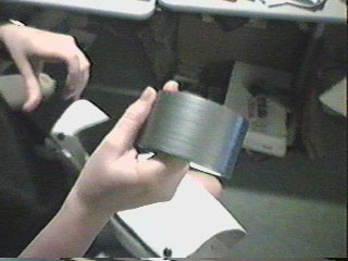 Press the tape down onto the ridges. Notice how shiny it is! |