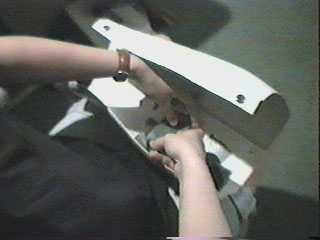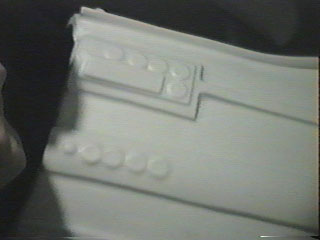 Now cut out the circular holes in the tape that correspond to the circular ridges. |