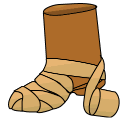 The LeggingsThe Legs of the Tusken Raiders were wrapped with dirty rags. For Authenticity, the first time I did my Tusken Raider costume, I wrapped my entire legs with ragged bandages. After running around at a convention for a full day I noticed that the only thing that really showed were my feet. I have since then gone to a slip-on Boot that is wrapped in bandages.Below are illustrations of how I wrapped my boots.